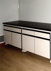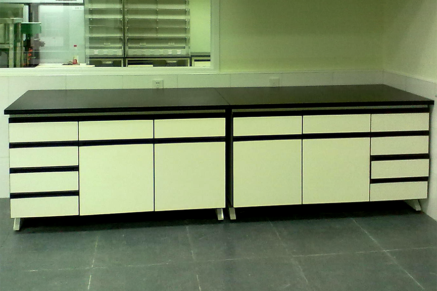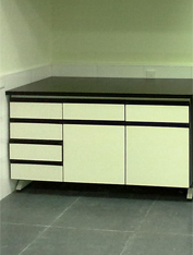 組成構(gòu)件 1、臺(tái)面板: 臺(tái)面板采用16mm環(huán)氧樹脂板。 2、柜體: 柜體采用18mm厚國家一級(jí)三聚氰胺雙貼面中密度成型板制作。柜門及抽屜面采用2mm厚PVC封邊條封邊,所有封邊連接處均做圓弧過渡處理。